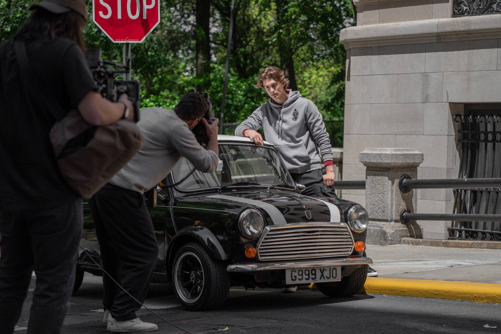 Today was a different type of workday for me. My buddy Roi reached out and asked if I could bring my Classic Mini Cooper to Harlem for a Karl Lagerfeld campaign he was working on. The idea of my little car being part of such a high-profile project was exciting, but I was equally nervous about the drive. Living on Long Island, I rarely take the Mini this far from home—and with its right-hand drive setup, the trip was bound to be an adventure.