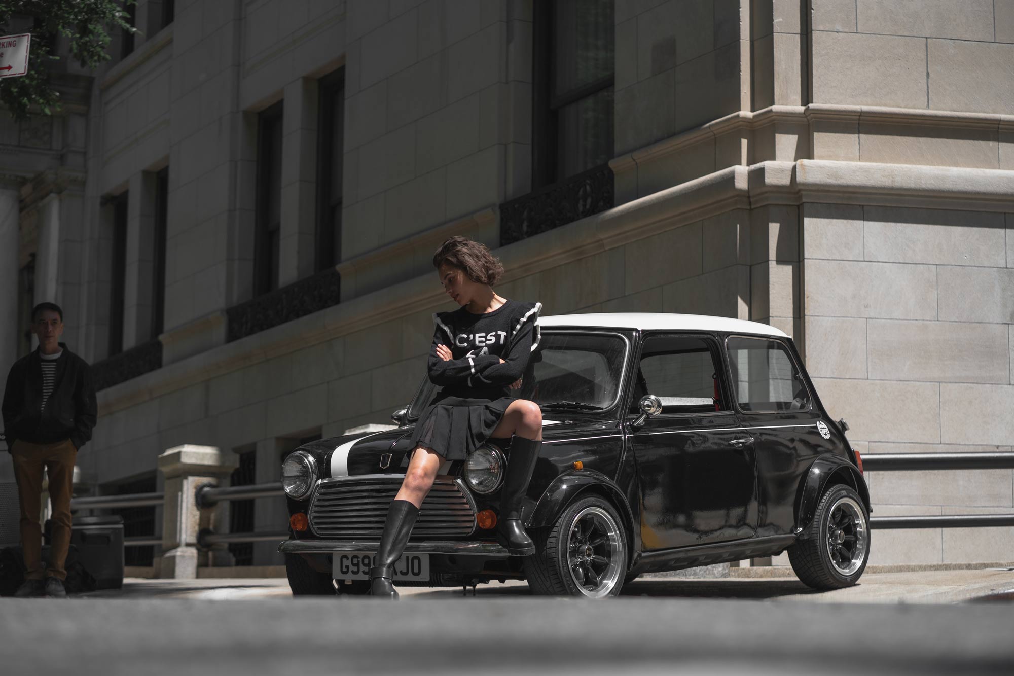 Although I was there solely to provide the car, I couldn’t resist bringing my camera along. After all, when you’re surrounded by that kind of energy and artistry, it’s impossible not to be inspired. I managed to capture a few behind-the-scenes moments—the interplay of fashion, the city backdrop, and my Mini Cooper tying it all together.